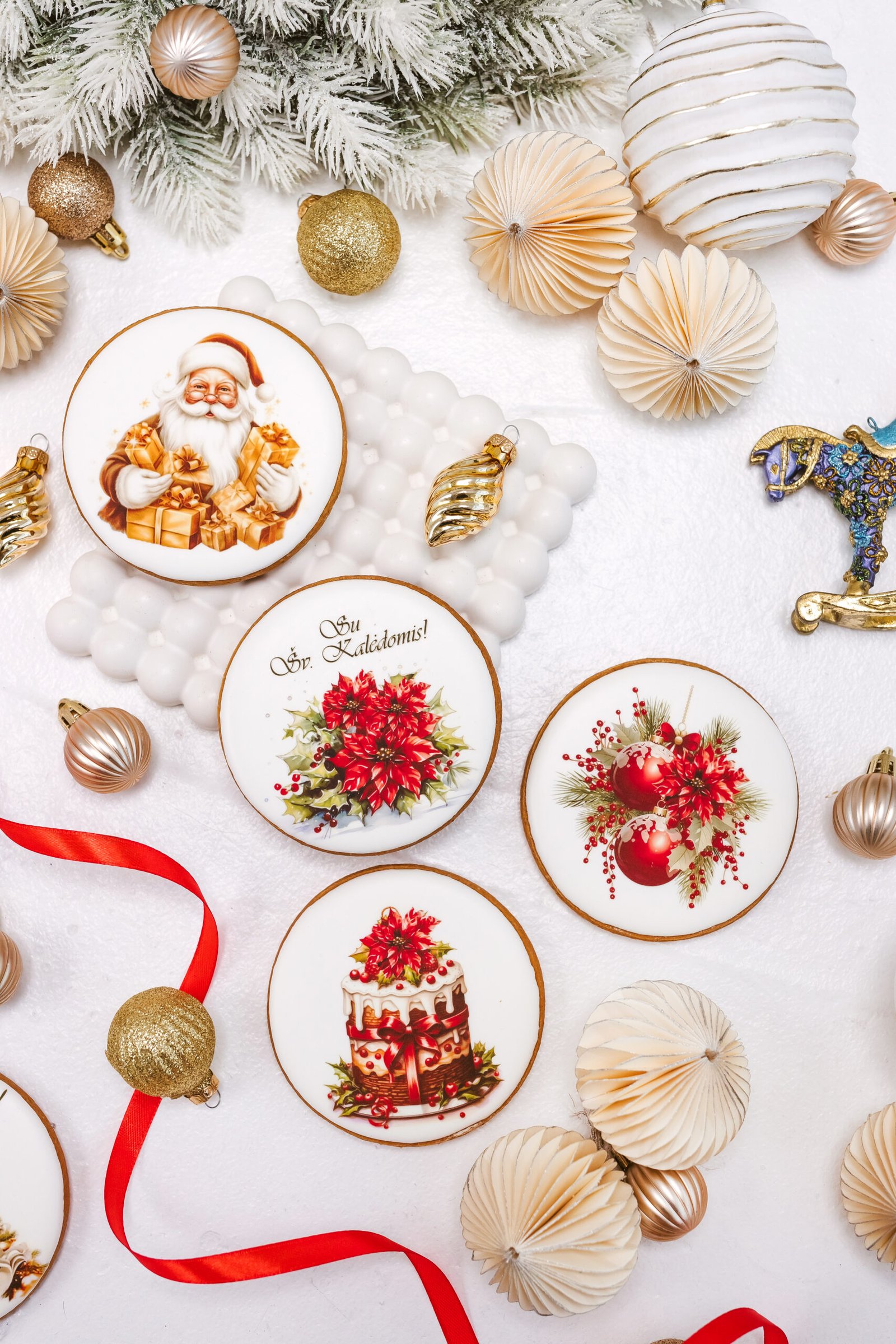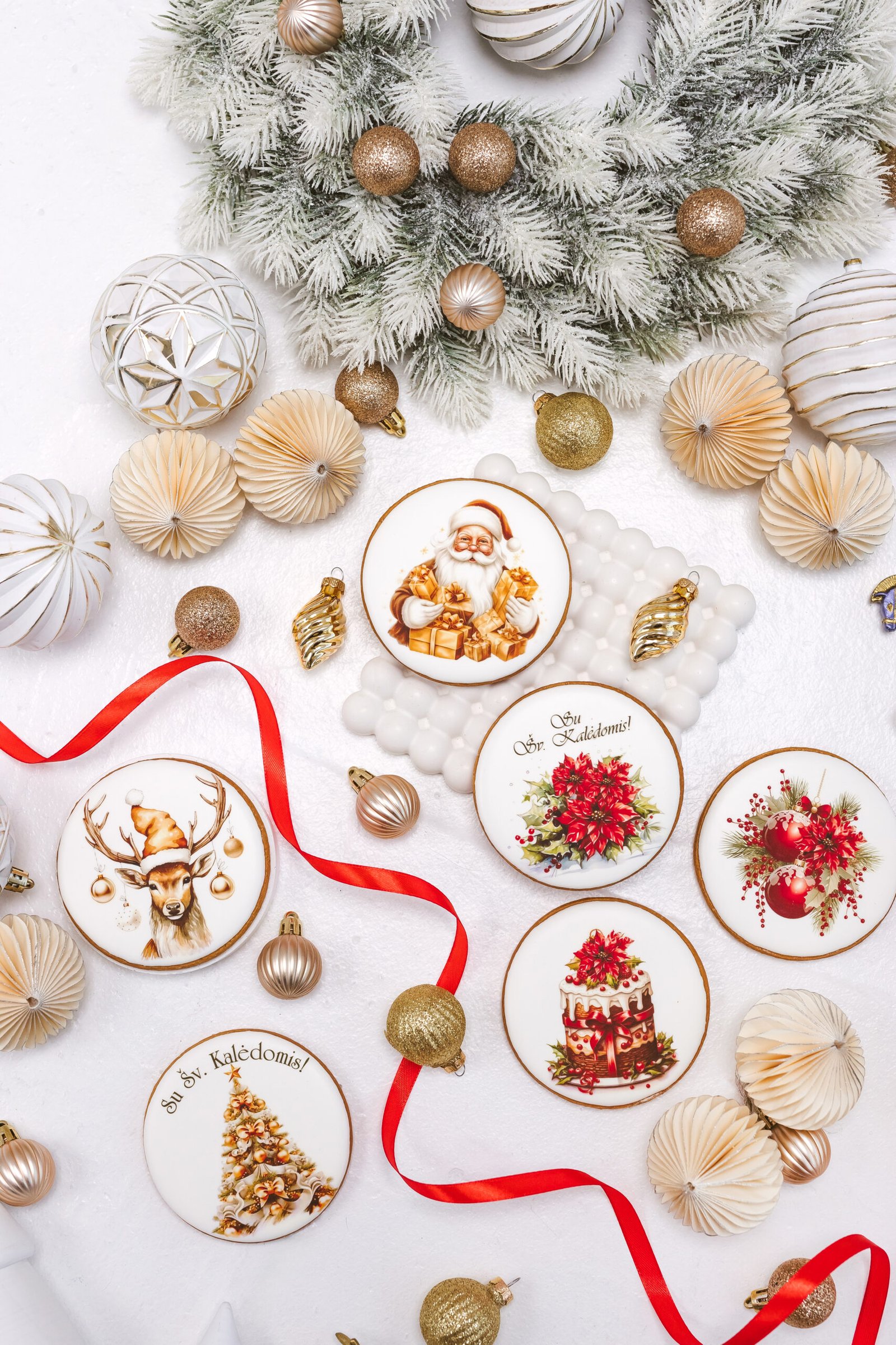 Siūlome elegantiškus, rankų darbo dekoruotus meduolinius  sausainius Kalėdoms.