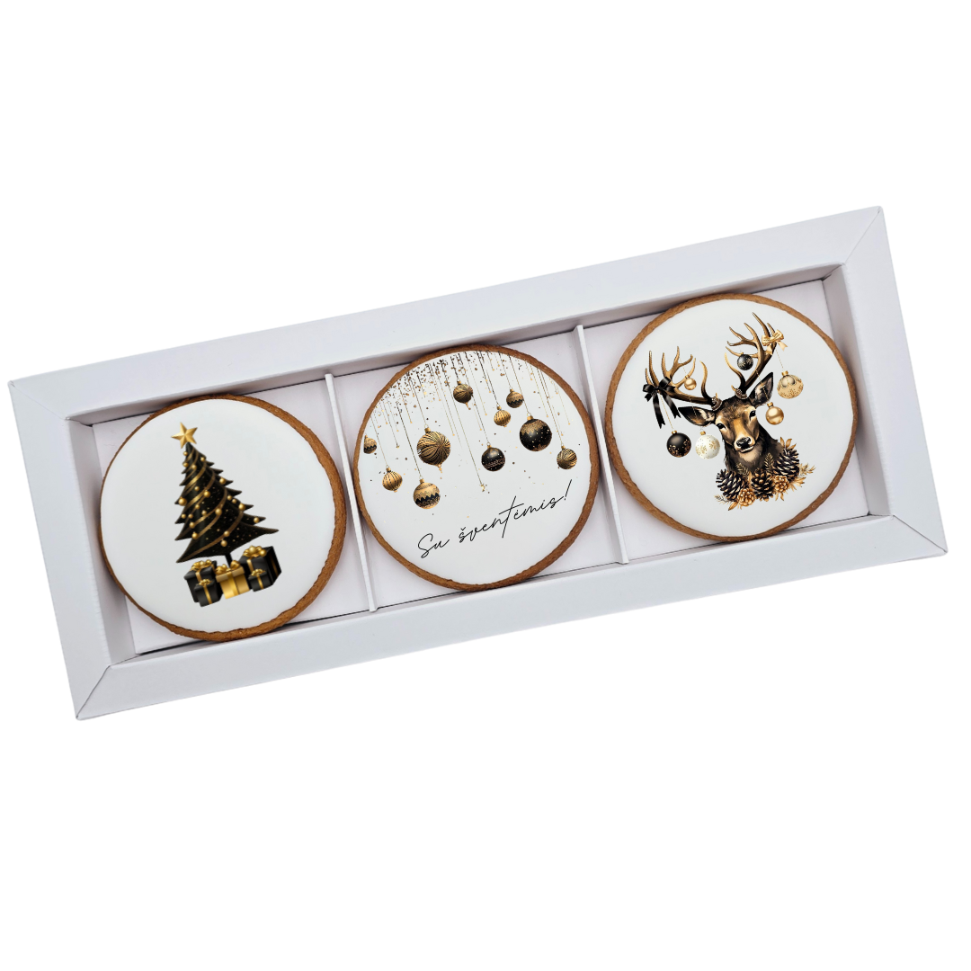 Dekoruoti meduoliniai sausainiai „Kalėdos” K64, 3vnt.