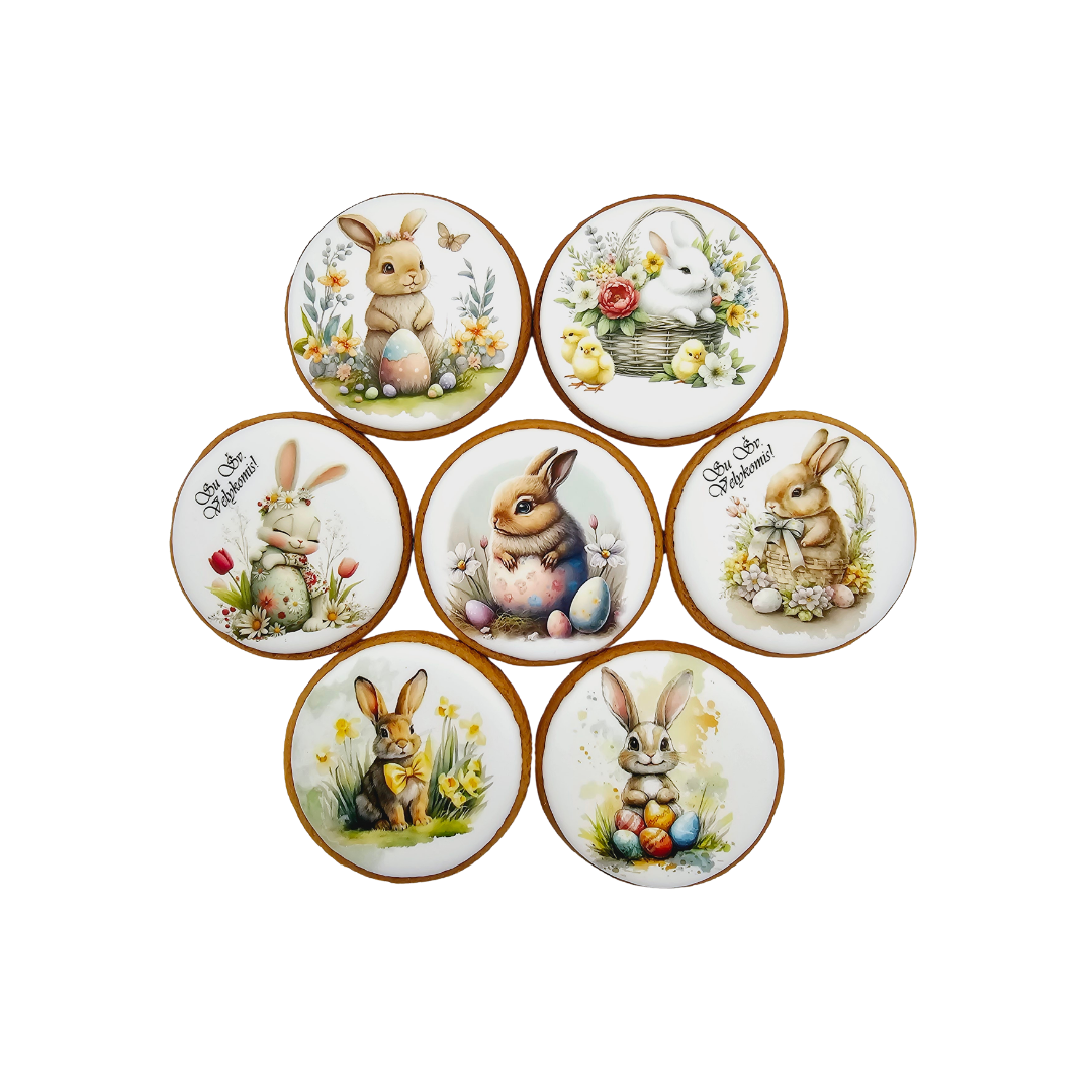 Šiai progai „Rugvilė“ sukūrė rankų darbo meduolius, dekoruotus žaismingais velykiniais kiškučiais, pavasario gėlėmis ir spalvingais margučiais. Švelnios iliustracijos suteikia sausainiams ypatingo jaukumo ir pavasariškos nuotaikos.
